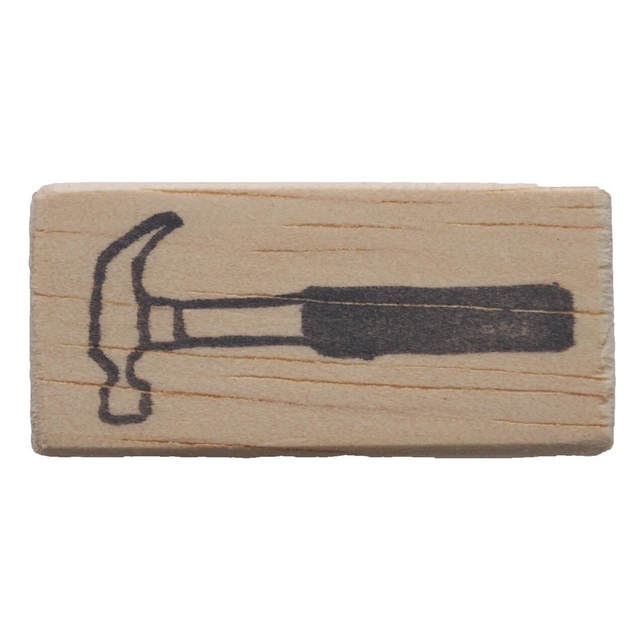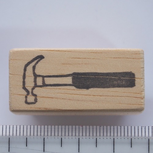 【一点もの】 金づちの手彫り一点ものの消しゴムはんこです。 印影サイズ:横3.2cm×縦1.4cm はがきの上に置いてみました。大きさの感じがわかるでしょうか。 作者:Littleufui (No.1-58)
